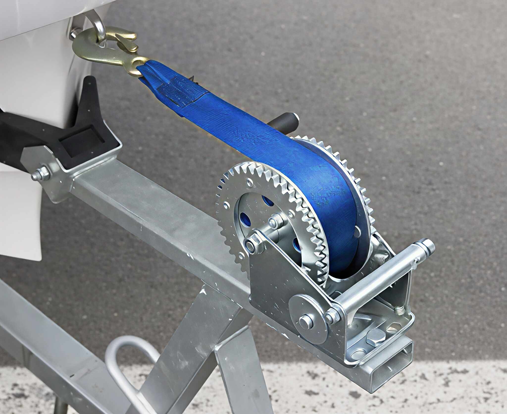 1,000-lb winch:4: 1 gear ratio, 2-inch polyester strap, 20 ft/min na paghila ng bilis, 50 ft haba ng strap.